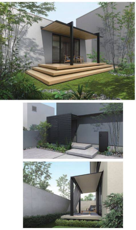 新たにテラス屋根が追加され、シンプルで洗練されたアウトドア空間、独立した離れとしての活用や、目隠しパネルとの併用で玄関ポーチのアプローチとしての設置など、様々な用途で設置していただけます(^^)