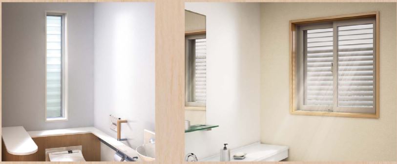 1階にあるトイレなどにはプライバシースクリーンや多機能ルーバーを設置することで目隠しや防犯対策にもなります(^^)/