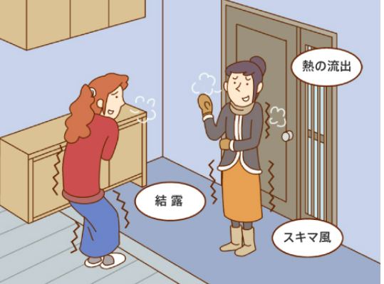 その原因は、玄関ドア・引き戸の気密性や断熱性の低さにあります!!