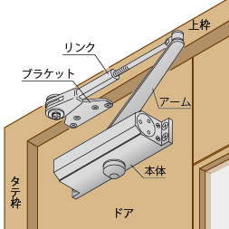 古くなってしまいドアクローザーの速度調整機構が壊れてしまい取り替える事したそうです。