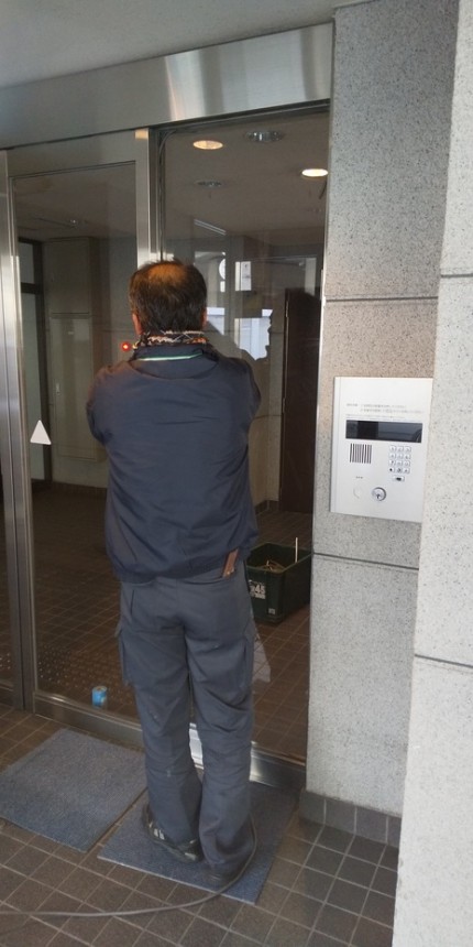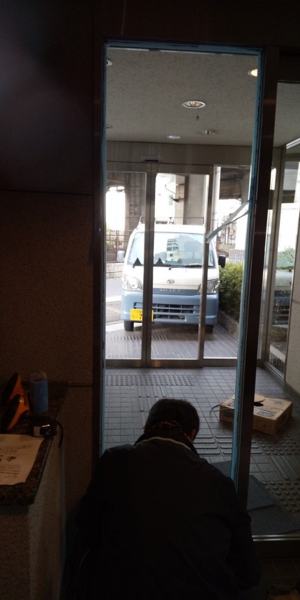 吹田市内のマンションの自動ドアの割れ替えをいたしました。