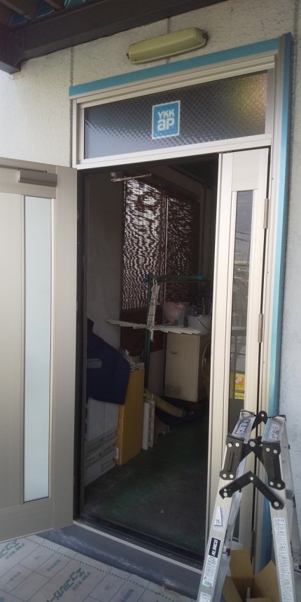 玄関のカバー施工は終了となります。