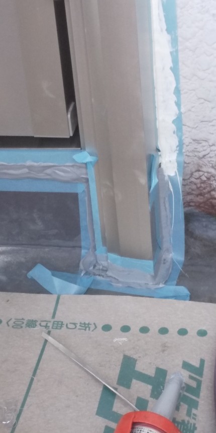 仕上げに玄関枠の周りにコーキングを打ちます。
