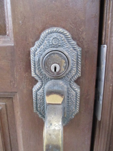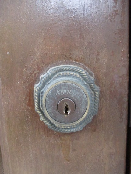 現状を確認すると、ナガサワ製作所の古代というシリーズ玄関錠が付いていました