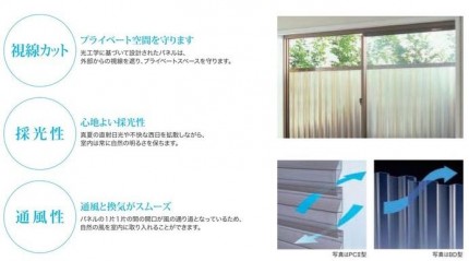 この商品は、目隠し部分がポリカパネルになっていて、光は遮らず、独自開発した中空構造で目隠し効果があります