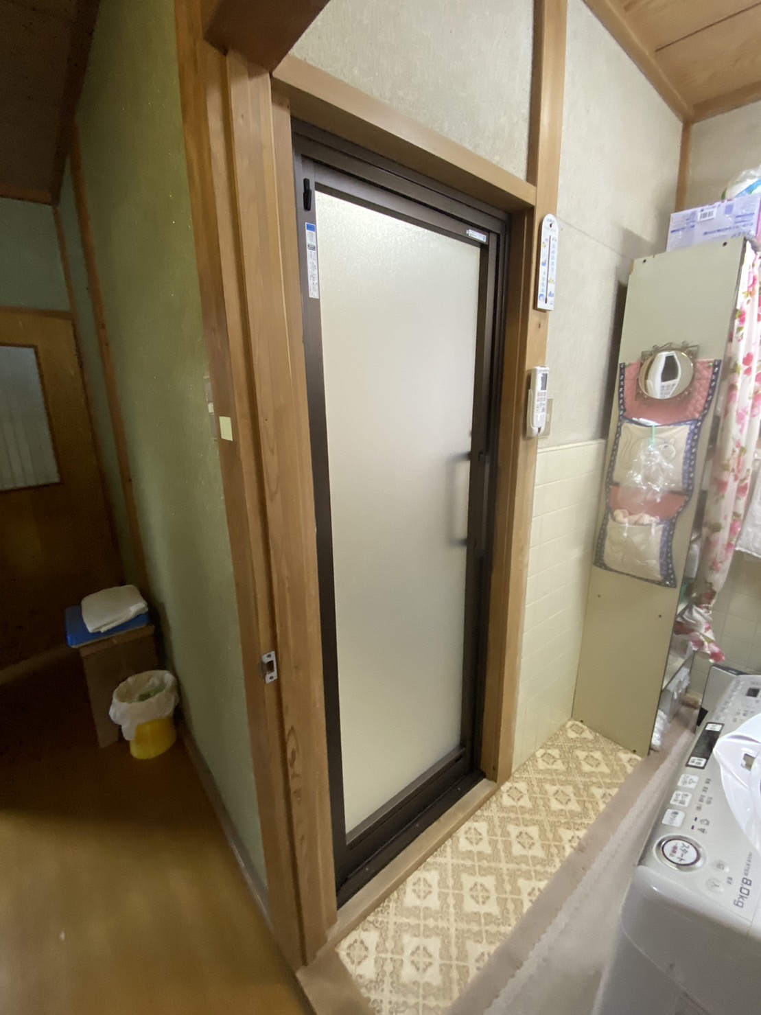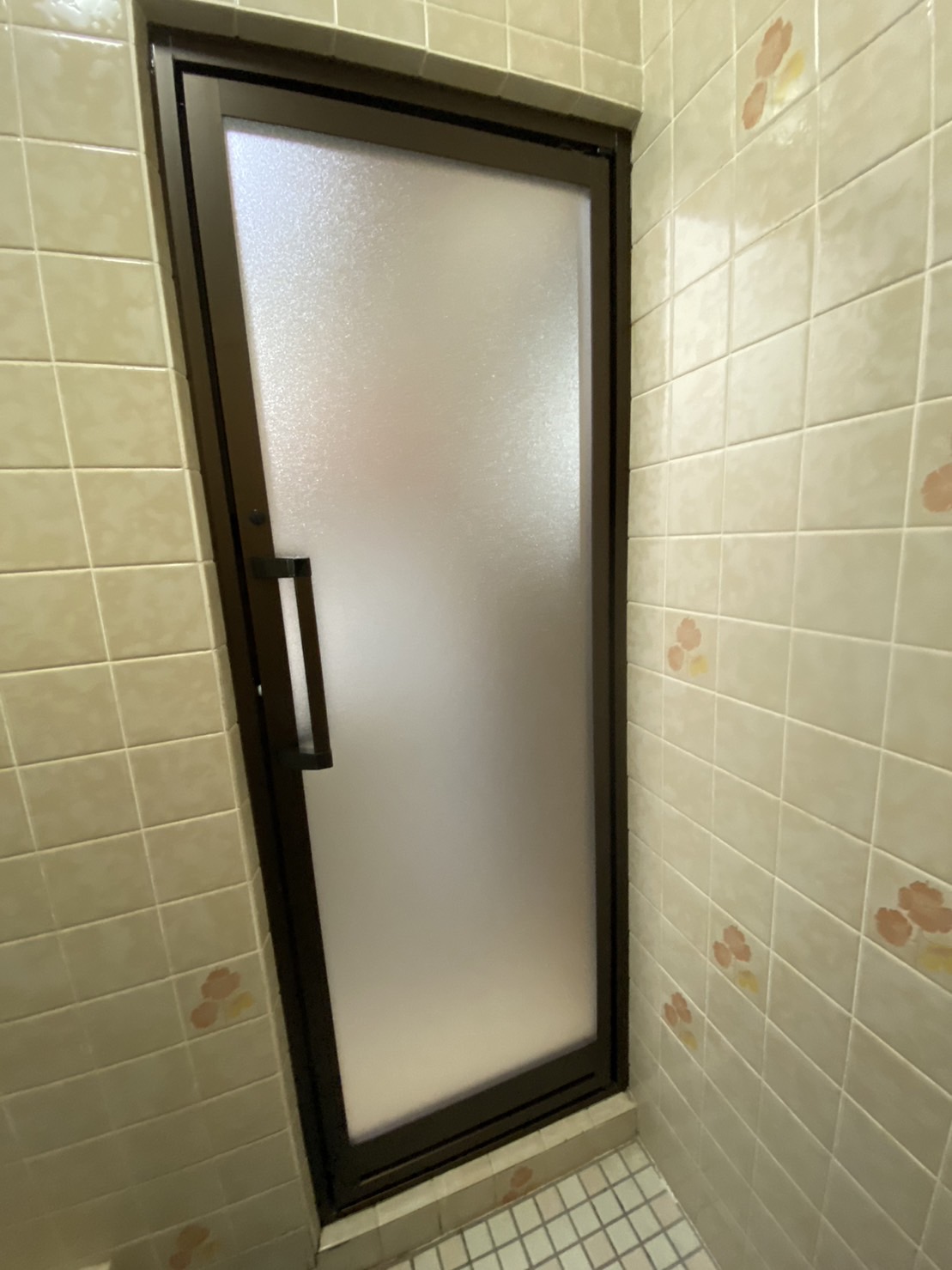 お客様から「お風呂のドアが古くなって傷んでいるので取り替えたい。」とご要望を頂きました。