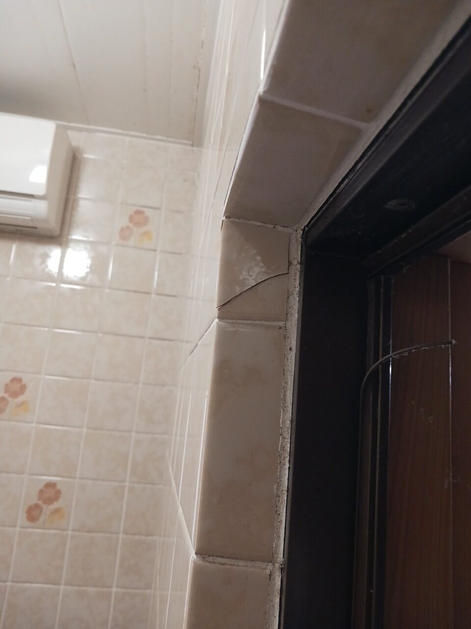 既存の枠を撤去しようとすると、浴室側のタイルをハツリ撤去しなくてはいけません。かなり大変な工事になります。