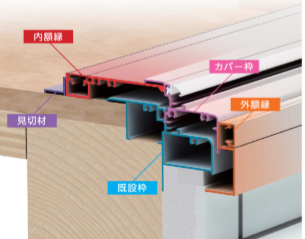 カバー工事とは、既存枠の中に新しい枠をお取付けする施工方法です。