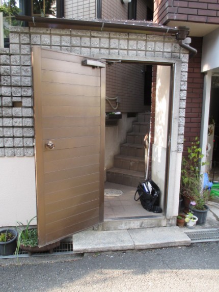 現場を確認すると、勝手口がお家の敷地の外に開く形になっていました