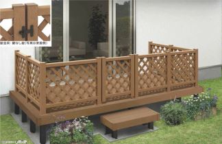 この商品は、デッキ材に木粉とポリプロピレンを配合した物を使用しているため、天然木と比べて腐食しにくい材料になっています