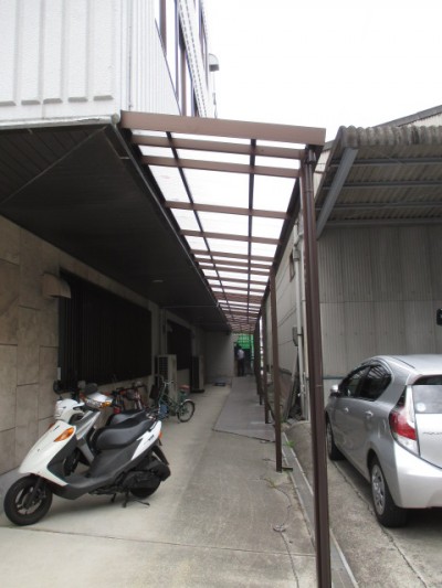 長い通路に屋根が欲しいとのご要望を頂き、取付させて頂きました。