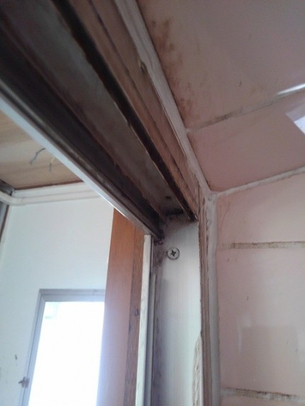 現場調査にお伺いすると、折れ戸の本体がレールから外れていました