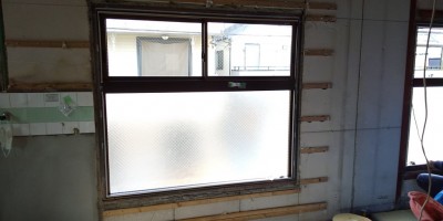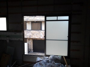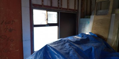 さらに4枚建ての内2枚分は、新しいキッチンの壁になる為、半分はFixにアルミ板を入れて壁にします。
