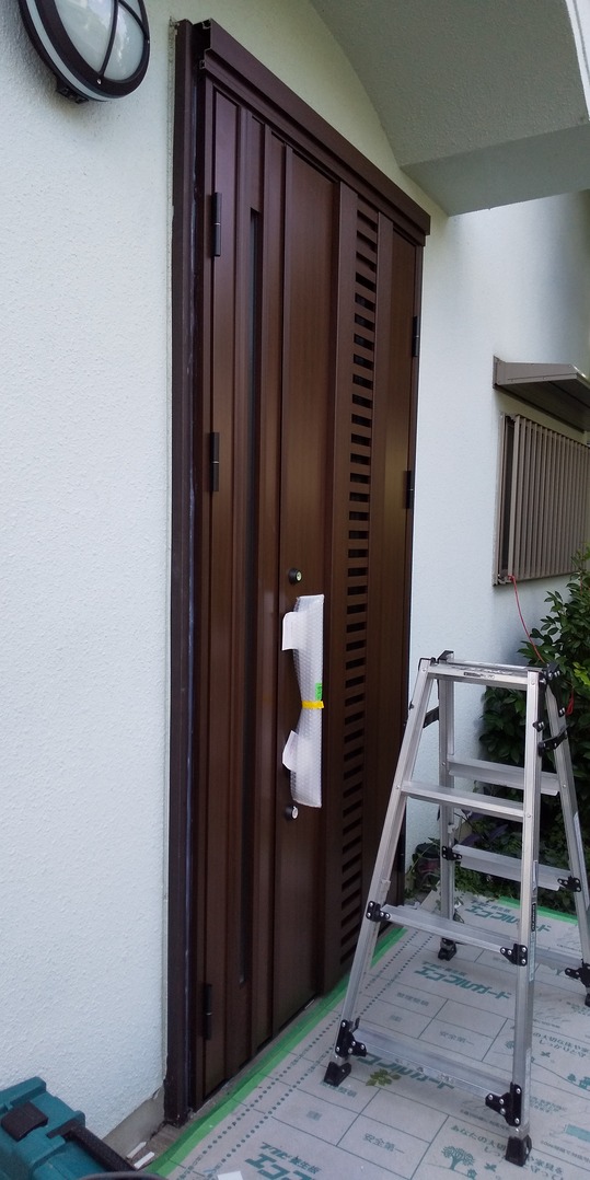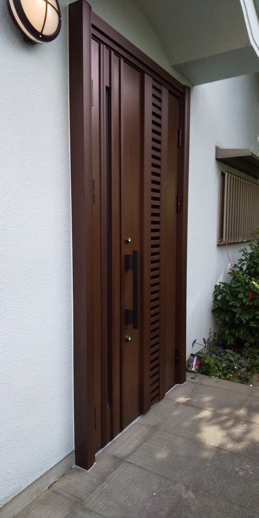 お客様から「玄関ドアを閉めたまま、通風できるタイプのドアに取り替えたい。」とご要望を頂きました。