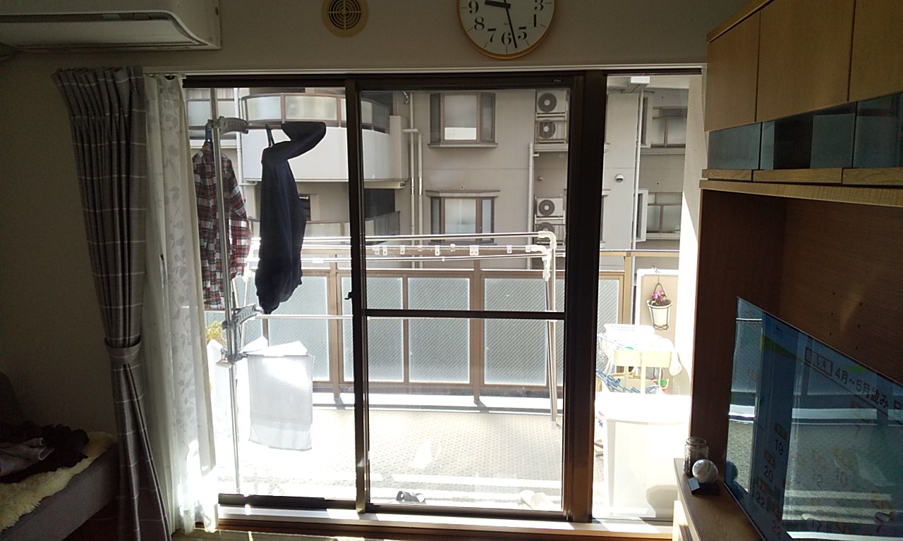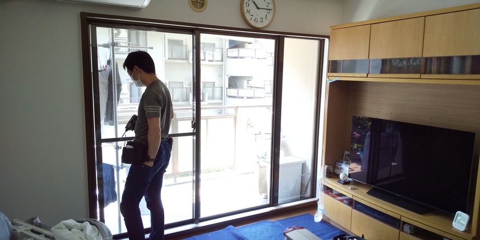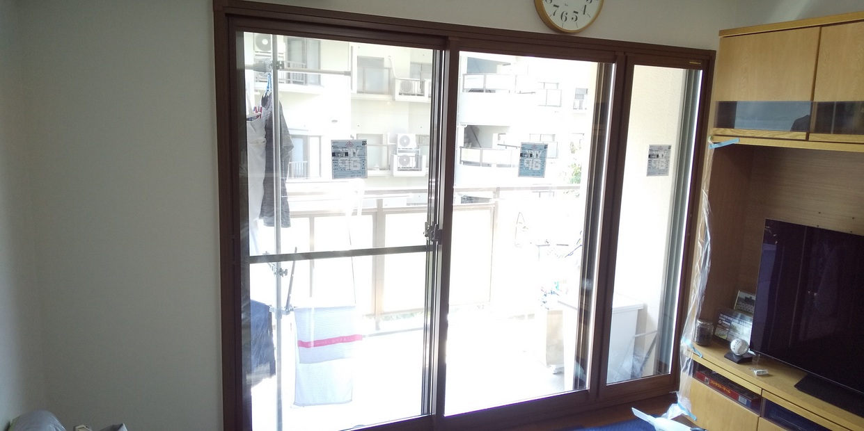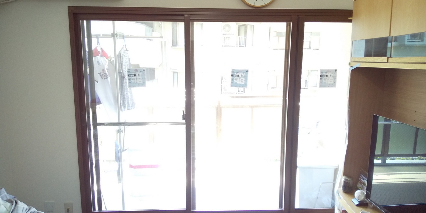 現状を確認すると、引き違い窓とFix窓が連窓された大きな窓でした。