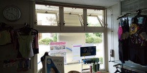 現状は外倒し窓に排煙装置が室内側に付いている為、このままでは網戸が取付出来ない状況でした。