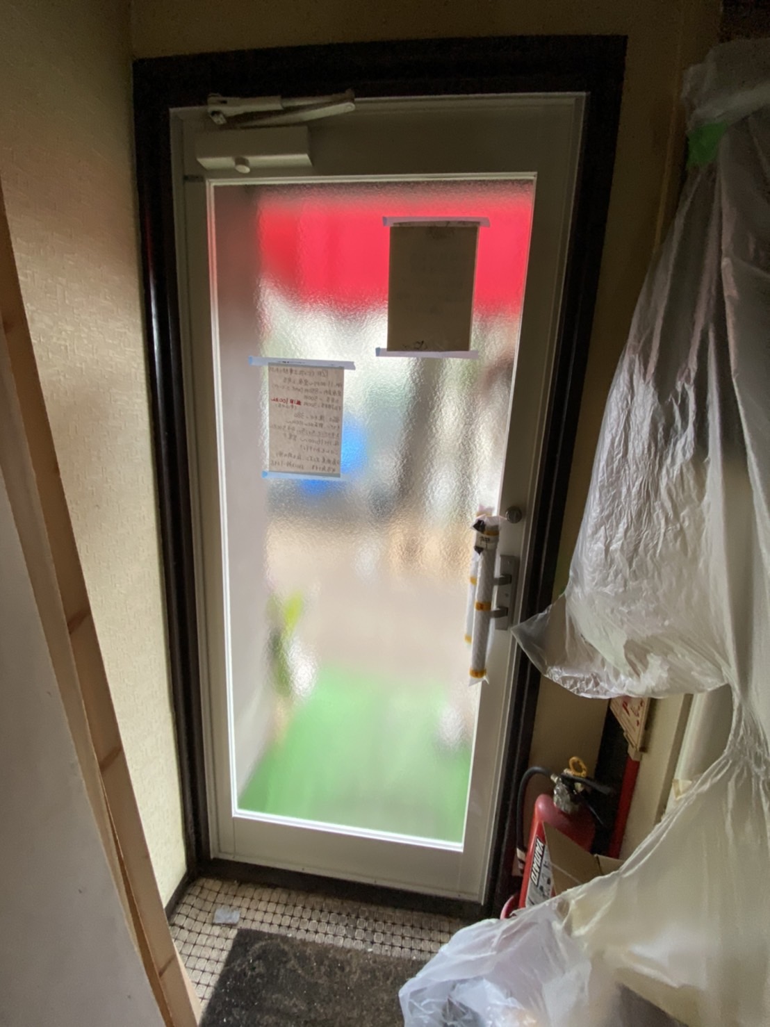 本日ご紹介するのは、先日お伺いした店舗の入り口ドアのお取替えの現場です。