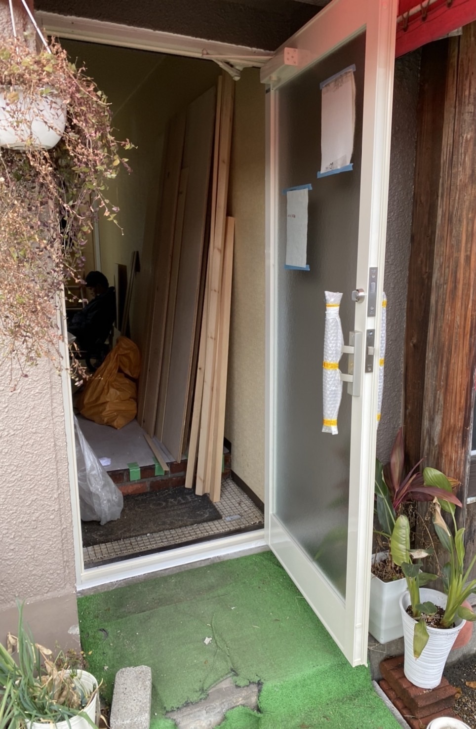 吹田市 店舗の入り口のドアを木製ドアからアルミドアへお取替え!|