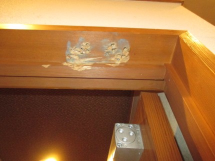 この状態では、新しいドアクローザーを用意しても、取付ビスがしっかり固定されない為、取り付けができません