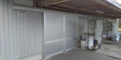 本日ご紹介するのは、先日お伺いした倉庫のハンガー引き戸お取替えの現場です。