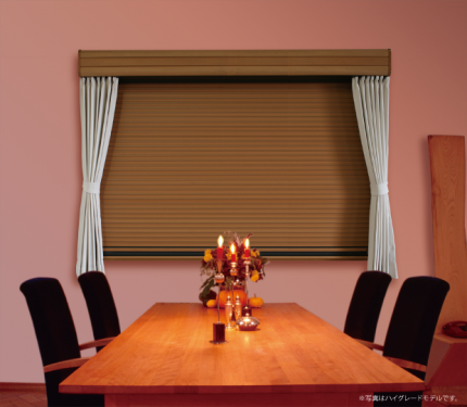 上部のシャッターボックスにはカーテンレールのライナーが取付可能ですので画像のようにカーテンボックス風の風合いになります