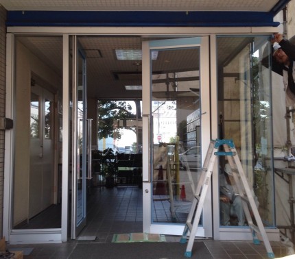 今回は某店舗の入り口と2階部のFIX(はめ殺し)窓の設置工事をさせて頂きました