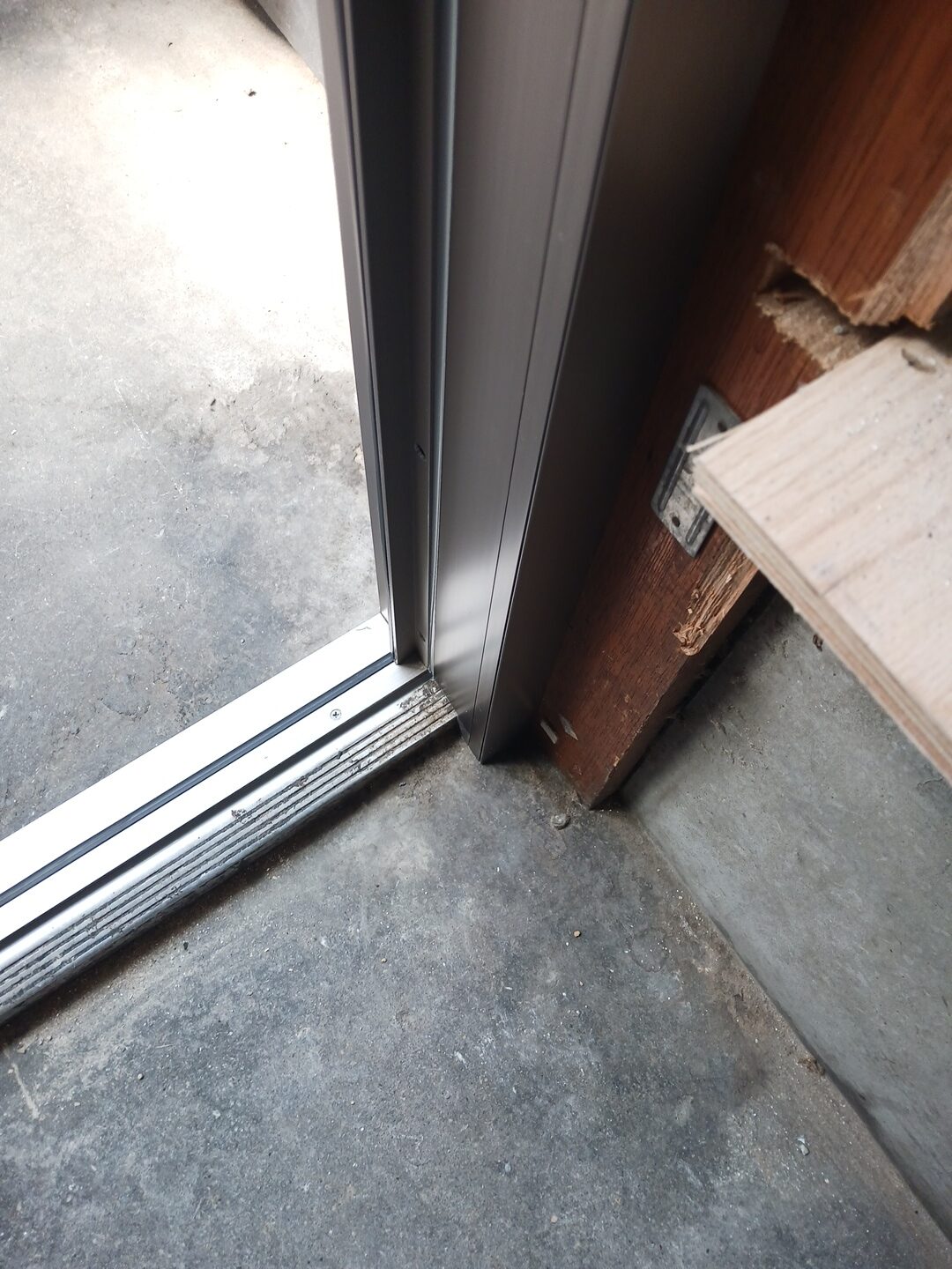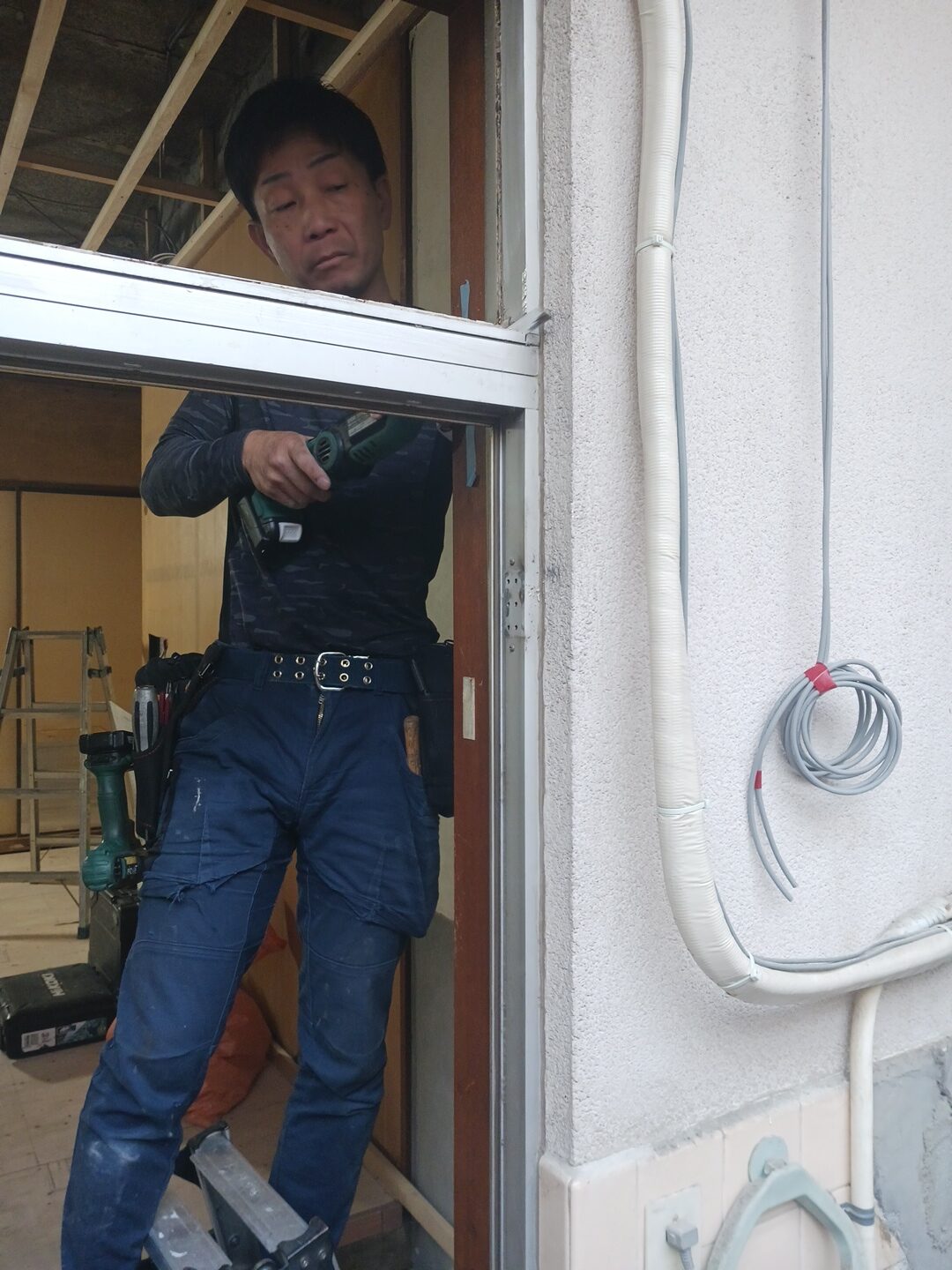 そうして出来た1つの大きな開口の中に新勝手口ドアの枠を取り付けていく工程になります。