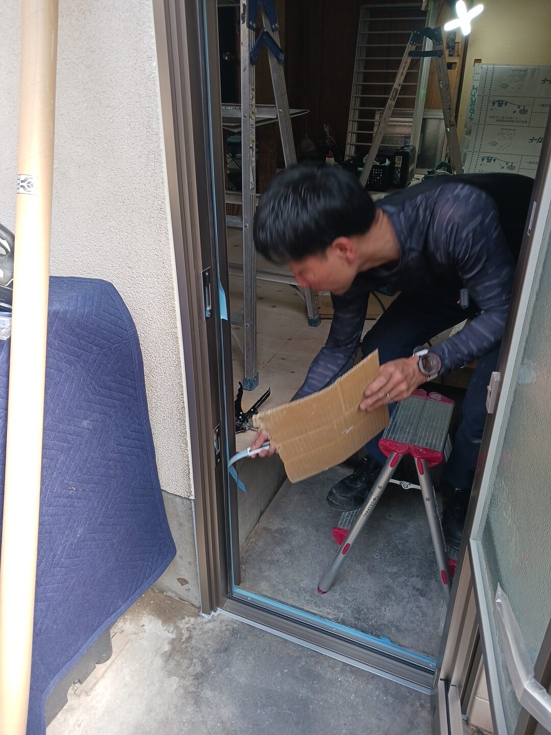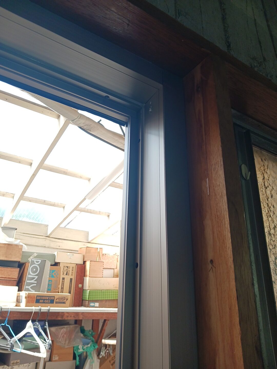 次の工程は旧勝手口枠を覆い隠すための化粧額縁の取り付けになります。