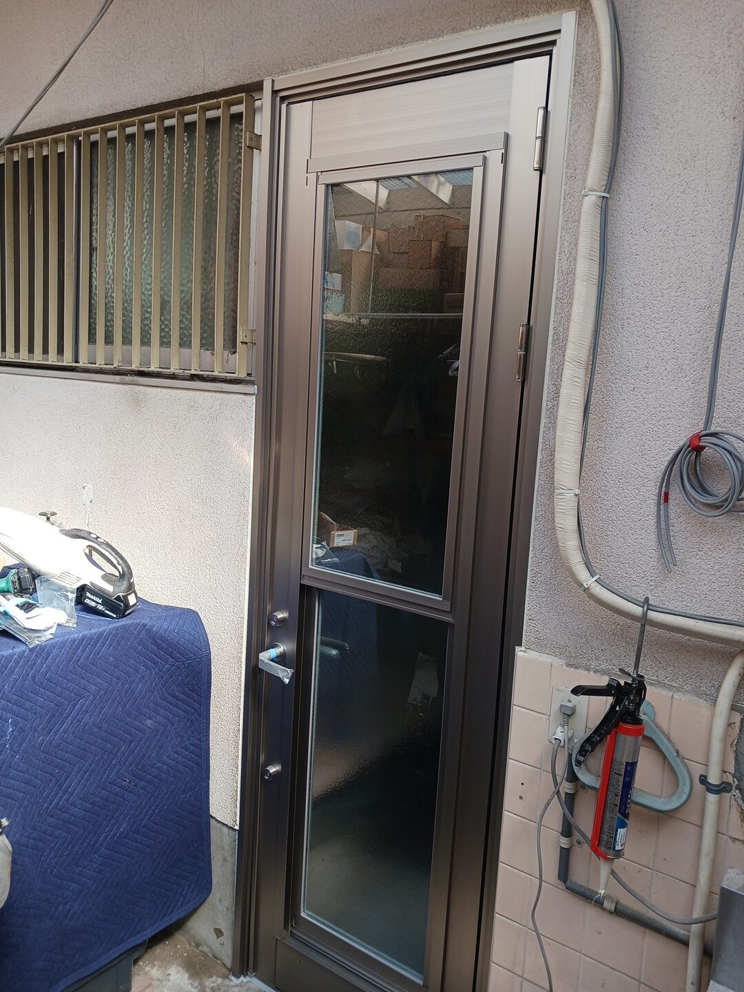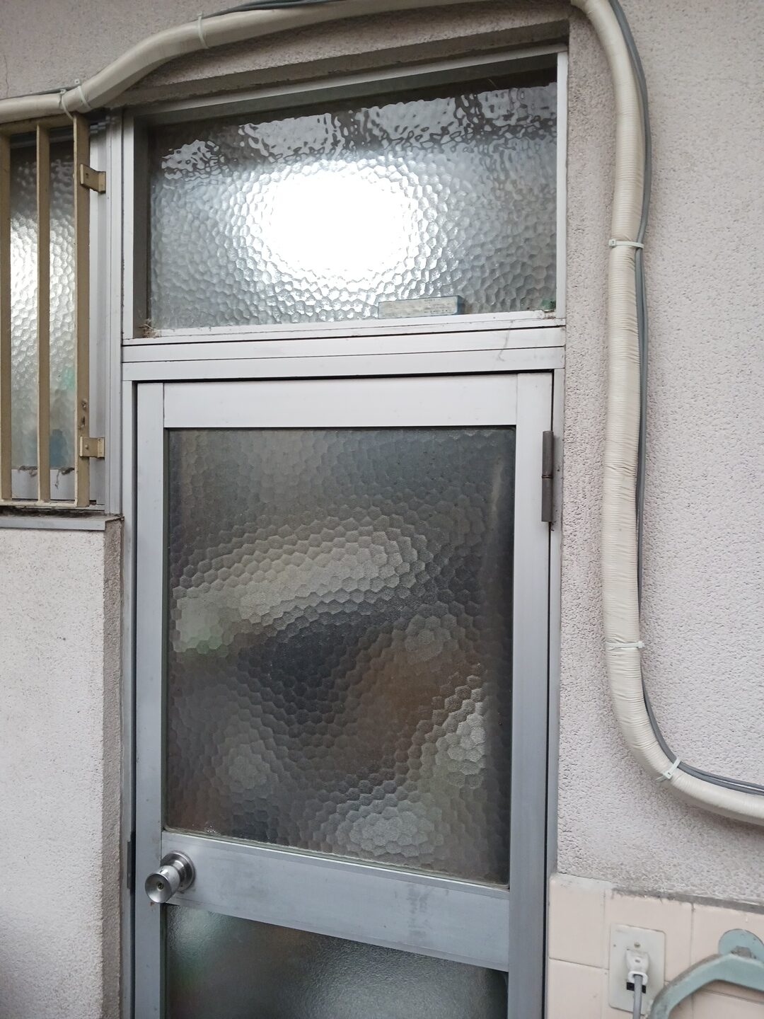 旧勝手口はランマ部にガラスが組み込まれており、その下が框ドアの形状でした。(1枚目の画像)
