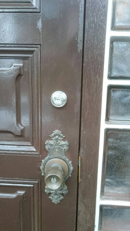 木製の玄関に追加で鍵を取り付けさせていただきました♪吹田市|