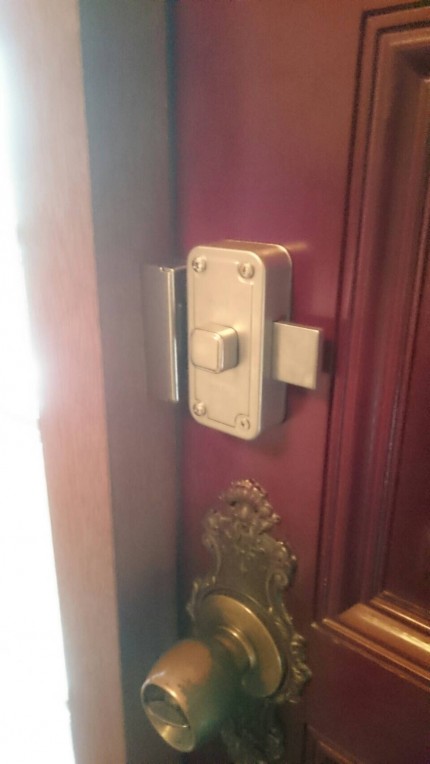 ドアの表面に取り付ける(面付け錠といいます)ので、ドアを掘り込んだりする必要が無く、ドアを大きく加工することがございません