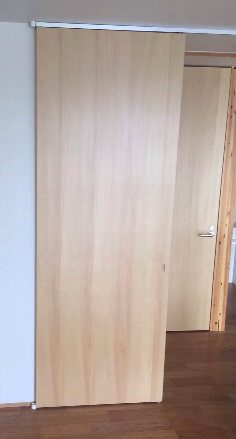 上吊式の木製片引戸を設置いたしました♪|