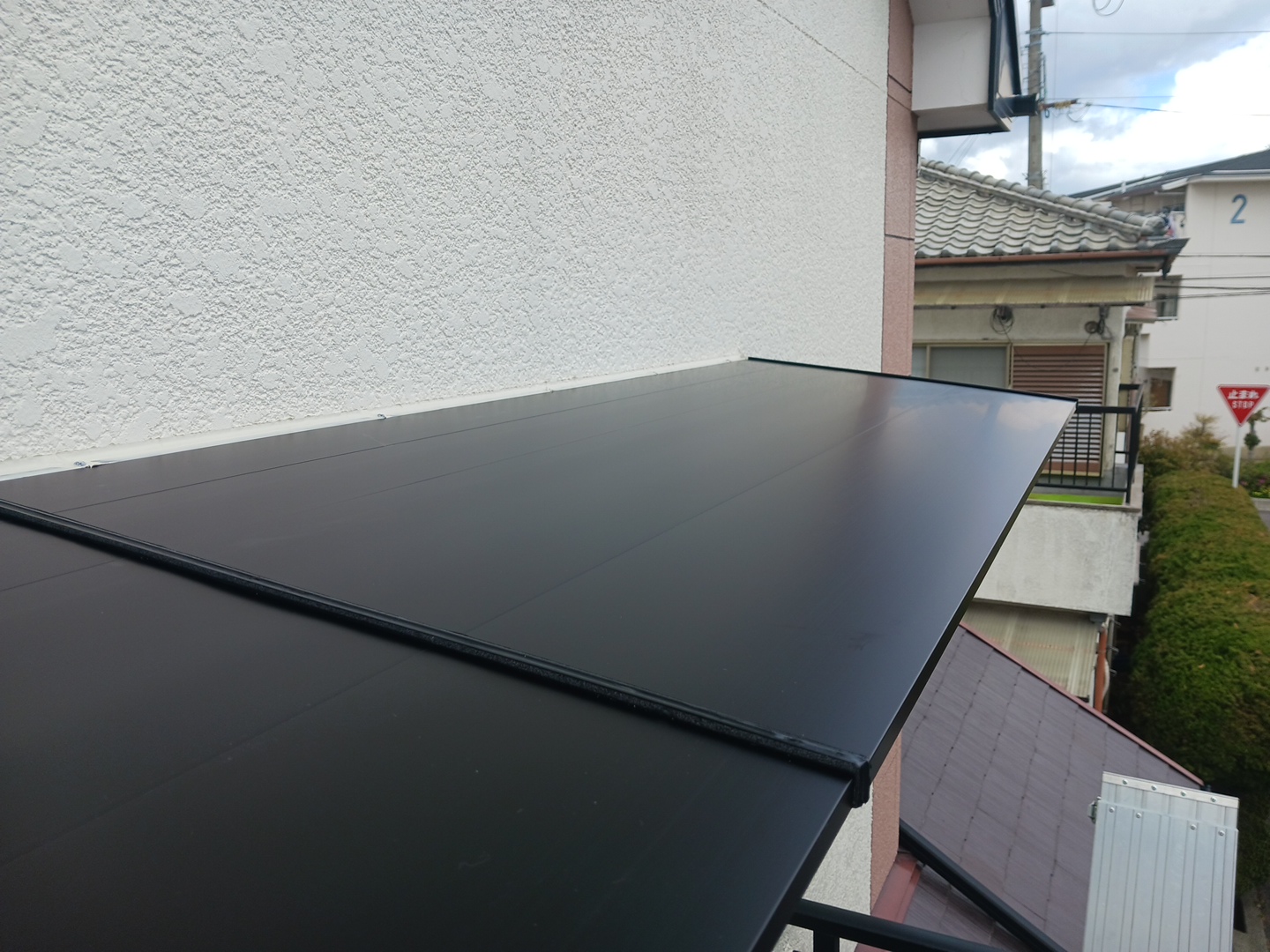 高槻市内にて2階ベランダの掃き出し窓上部に2連の庇を工事させていただきました♪