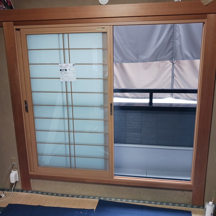 和室なので紙貼り和障子風な内窓ガラス障子をご採用いただきました。