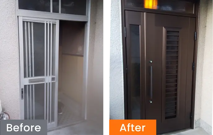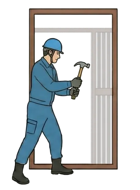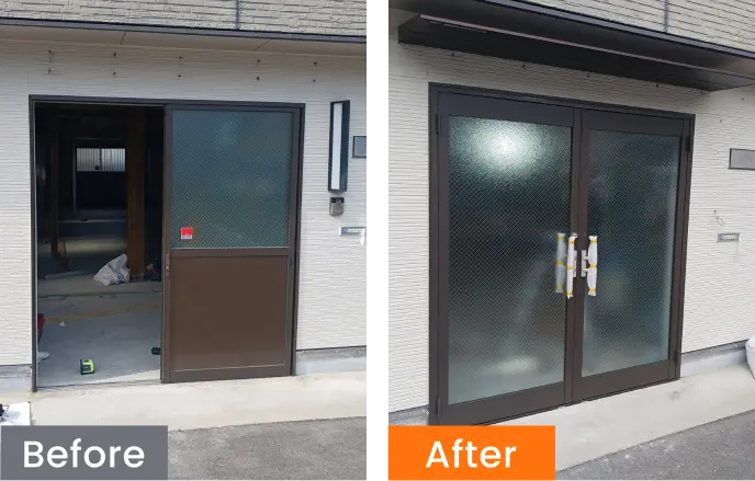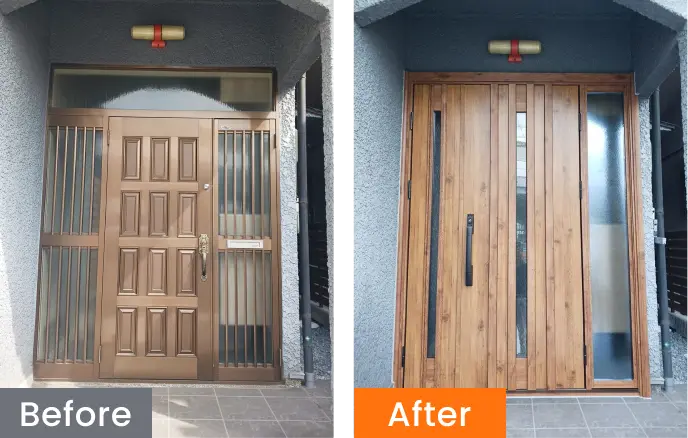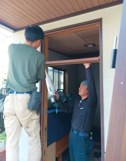 基本的には半日~1日で完了します。壁を壊す必要がないため、養生や後片付けも簡単で、工事当日から新しいドアをご使用いただけます。