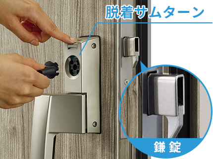 そして、サムターン回しを防ぐために、取り外しが可能な「脱着式サムターン」。