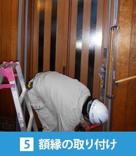 その新しい枠の中にドアを取り付け、古い枠をカバーする化粧枠を取り付けます。