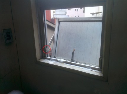 赤丸の部分に取付る部品で、サッシを固定する為に重要な部