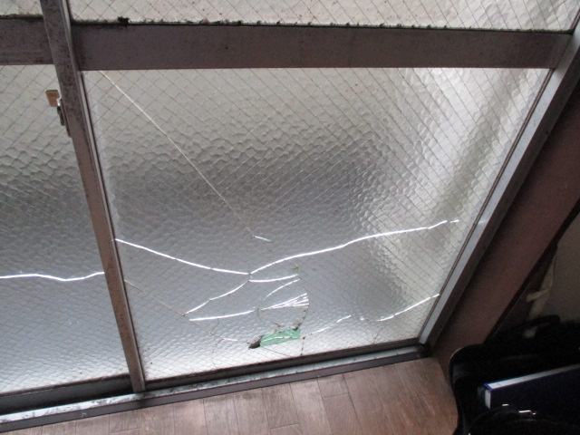 お客様から「菱型ワイヤーガラスにぶつかってしまい、割れてしまいました。」とお問い合わせがありました。