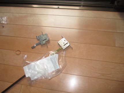 アミドの取り付けに伺いましたところ、 雨戸の鍵の調子が悪いと点検したところ、鍵が壊れていました。これでは調整では直らないので、部品を取り寄せました。 入荷しましたので早速取り付けにいきました。