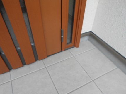 下部は外額縁同様に切り欠きが必要です。また、段差が少し出来るので段差解消部材を取り付けします。