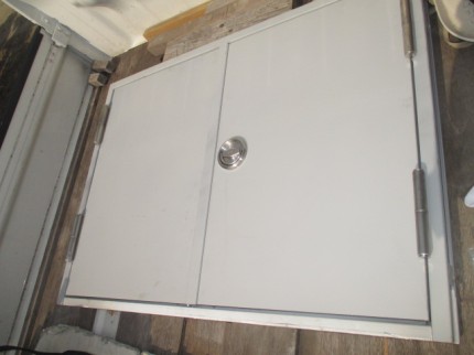 こちらが鋼製の両開き戸です、重さは結構あります。