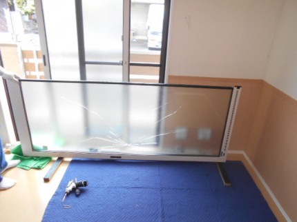 割れたガラスが飛び散らないように慎重に引き抜きます。