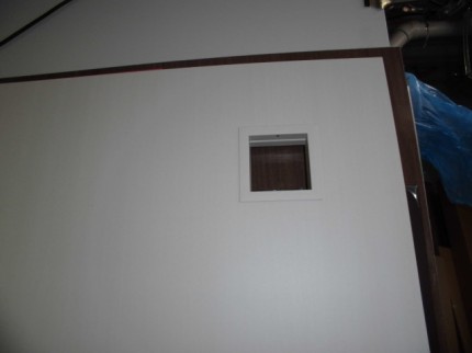 新品木製建具に、ガラス寸法とり、切断、はめ込み。
