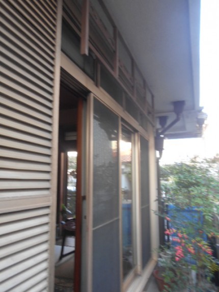 現場調査にお伺うと、枠が垂れてきており、雨戸を動かした時に干渉して大変固くなっていました。これでは、動かすのにも一苦労です。