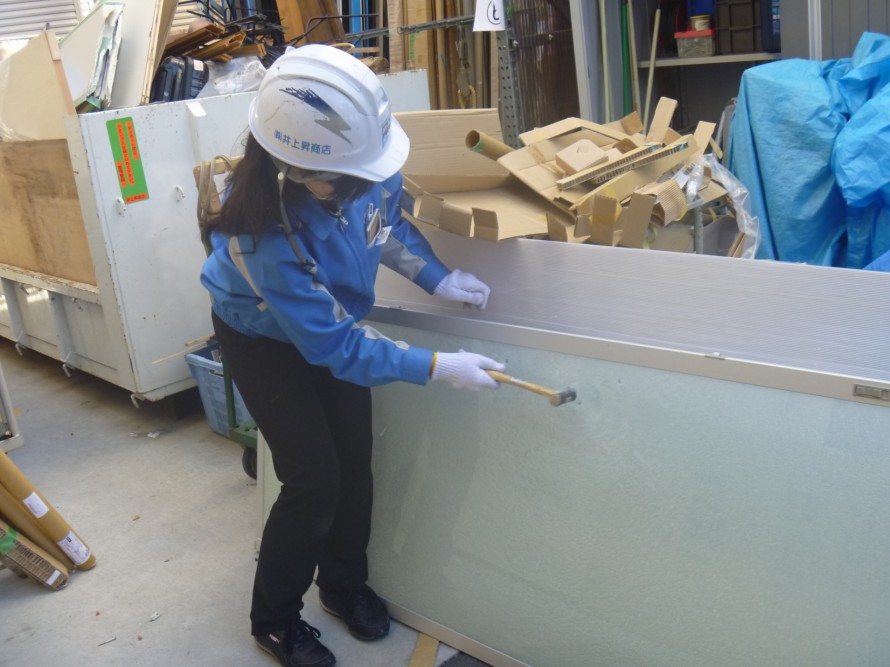 そこで本日、処分する強化ガラスのドアを使って【強化ガラスはどれくらいの強さで割れるのか?】【割れ方はどんなものか?】を知る為、