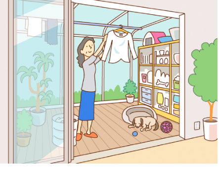 そこで、当社の提案としては、テラス囲いを取り付けて、ペットスペースにしては、いかがでしょうか。自然の風や光を取り入れ、ペットが快適に楽しめる空間になるはずです。雨の日でも洗濯物を干せる便利なスペースにもなります。