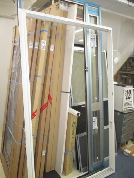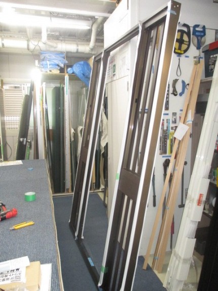 玄関を 組立ます この玄関枠は 両袖タイプです。 うちの 工場は そんなに 広くないので 組立には コツが入ります。