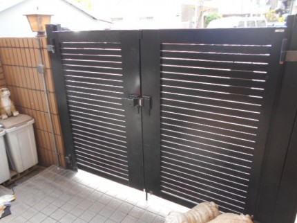 お客様から「門扉のハンドルの閉まりが悪くなっている」とお客様からご要望を頂きました。早速、現場調査に伺いました。四国化成の門扉が取付られていました。