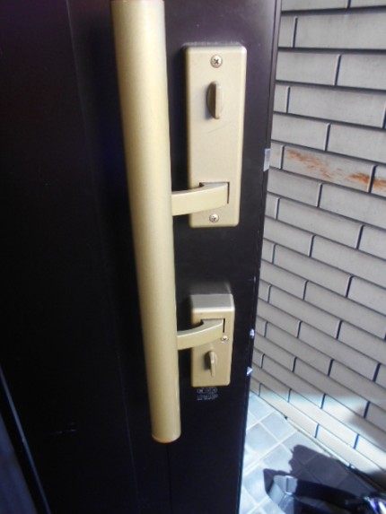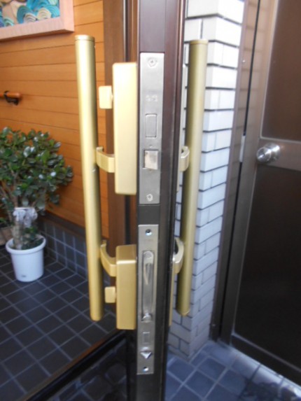 三協アルミの玄関で、DXⅡが付いていました。20年前のモデルということもあり、シリンダーサムターンと錠が連動する部分が磨り減っていて、作動しなくなっていました。